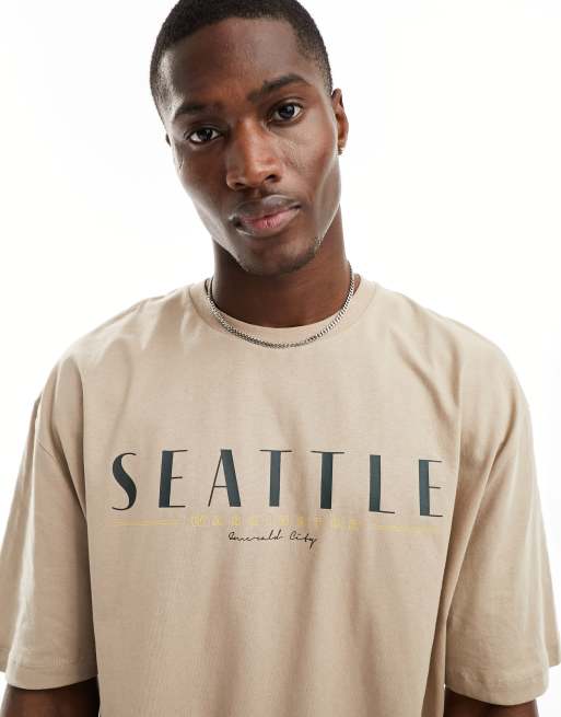 ASOS DESIGN - T-shirt oversize beige con stampa "Seattle" sul petto