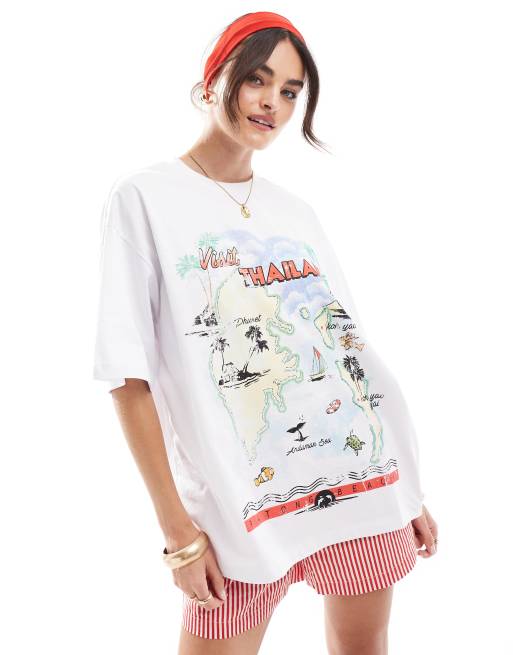 ASOS DESIGN - T-shirt oversize bianca con grafica della mappa della Thailandia