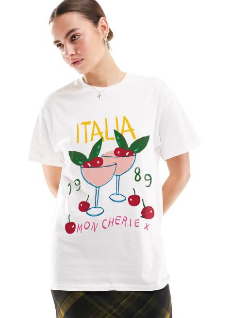 ASOS DESIGN - T-shirt oversize bianca con grafica "Italy" con ciliegie