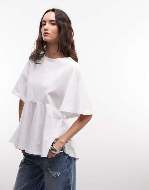 ASOS DESIGN - T-shirt oversize bianca con maniche oversize e fondo peplo