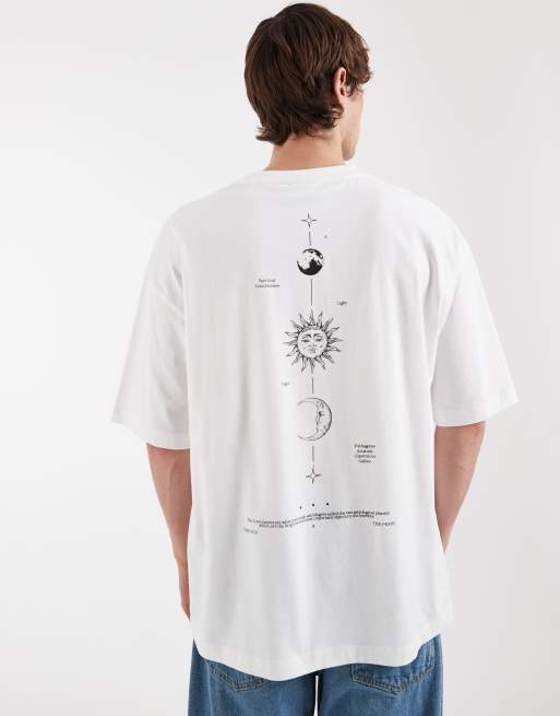ASOS DESIGN - T-shirt oversize bianca con stampa celestiale in verticale sul retro