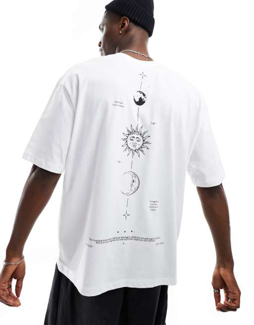 ASOS DESIGN - T-shirt oversize bianca con stampa celestiale sul retro