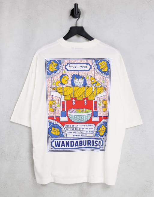 ASOS DESIGN - T-shirt oversize bianca con stampa con disegni stile cartone sul retro
