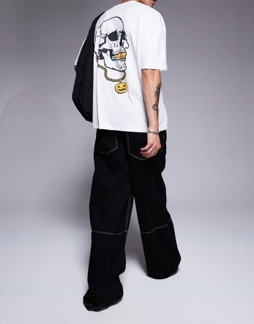 ASOS DESIGN - T-shirt oversize bianca con stampa di teschio sul retro