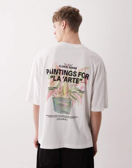 ASOS DESIGN - T-shirt oversize bianca con stampa digitale di fiori