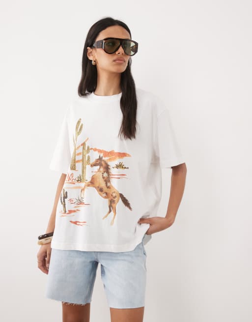 ASOS DESIGN - T-shirt oversize bianca con stampa western