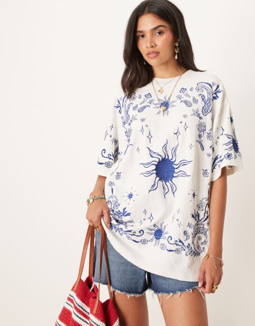 ASOS DESIGN - T-shirt oversize bianco sporco con ricami