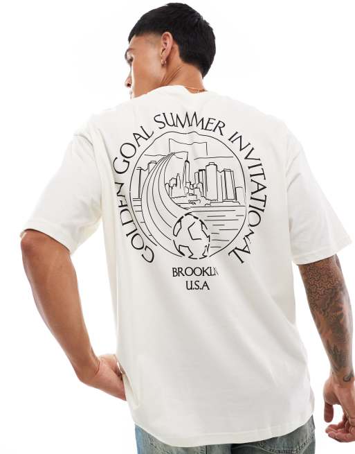 ASOS DESIGN - T-shirt oversize bianco sporco con stampa di paesaggio sul retro