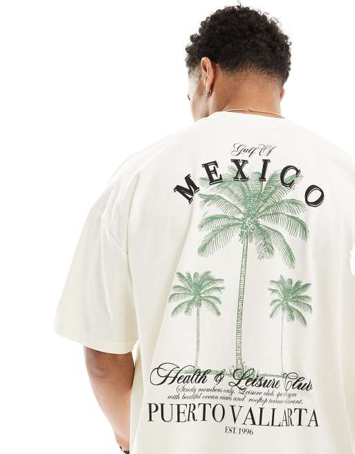 ASOS DESIGN - T-shirt oversize bianco sporco con stampa "Mexico" sul retro