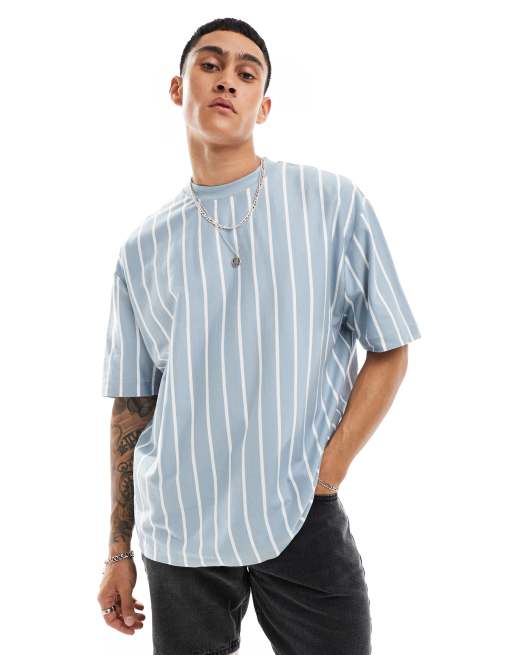 ASOS DESIGN - T-shirt oversize blu a righe verticali