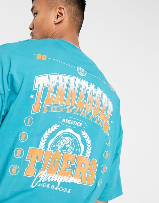 ASOS DESIGN - T-shirt oversize blu con scritta e stampa di tigre sul retro