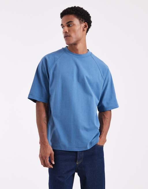 ASOS DESIGN - T-shirt oversize blu medio in tessuto pesante con maniche raglan