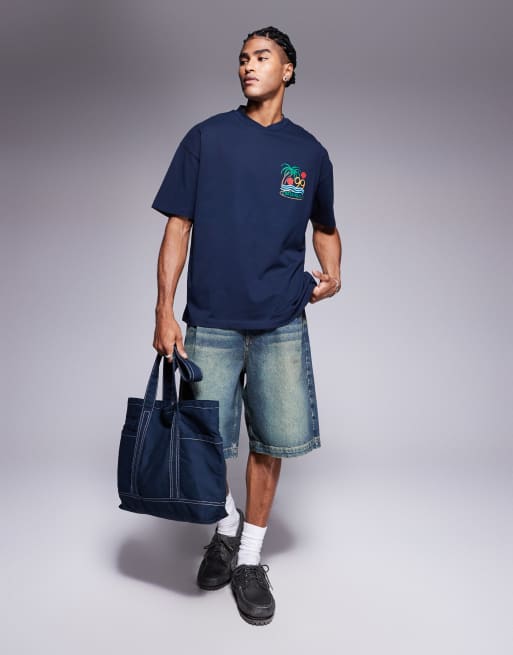 ASOS DESIGN - T-shirt oversize blu navy con grafica estiva