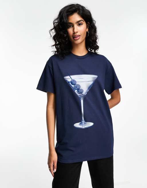 ASOS DESIGN - T-shirt oversize blu navy con stampa di martini