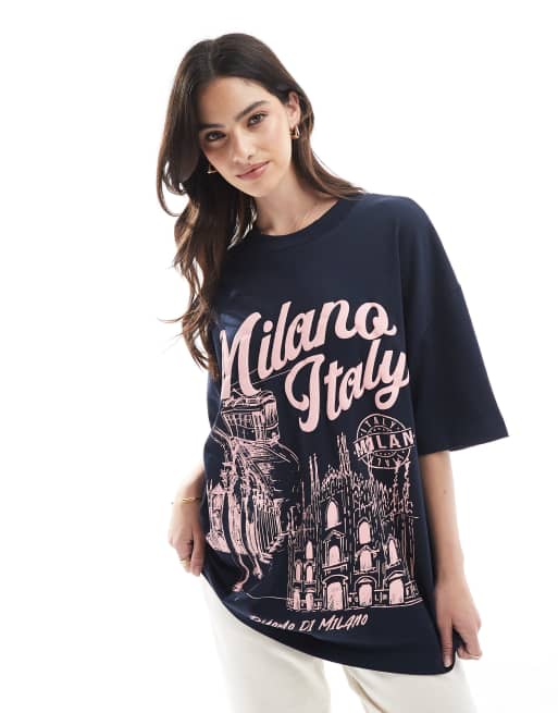 ASOS DESIGN - T-shirt oversize blu navy con stampa "Milano" in rilievo