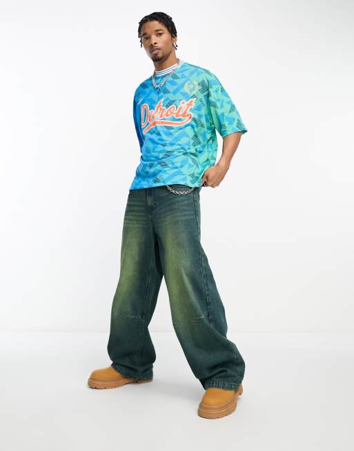 ASOS DESIGN - T-shirt oversize con stampa a tema football rétro - MBLUE