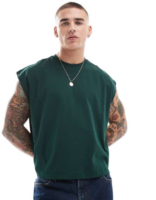 ASOS DESIGN - T-shirt oversize corta verde scuro senza maniche