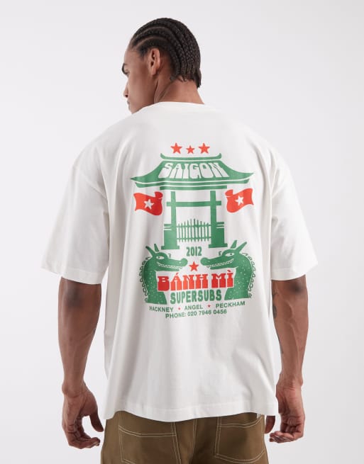 ASOS DESIGN - T-shirt oversize crema con grafica di dragone