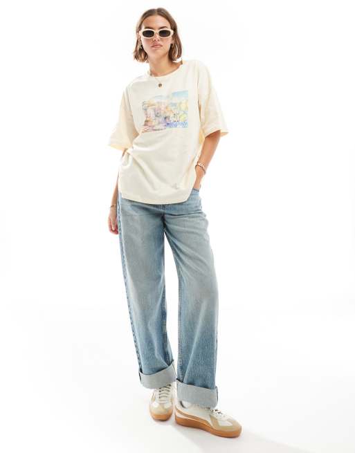 ASOS DESIGN - T-shirt oversize giallo limone con grafica "Sorrento" stile acquerello