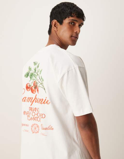 ASOS DESIGN - T-shirt oversize in tessuto pesante bianca con stampa sul petto