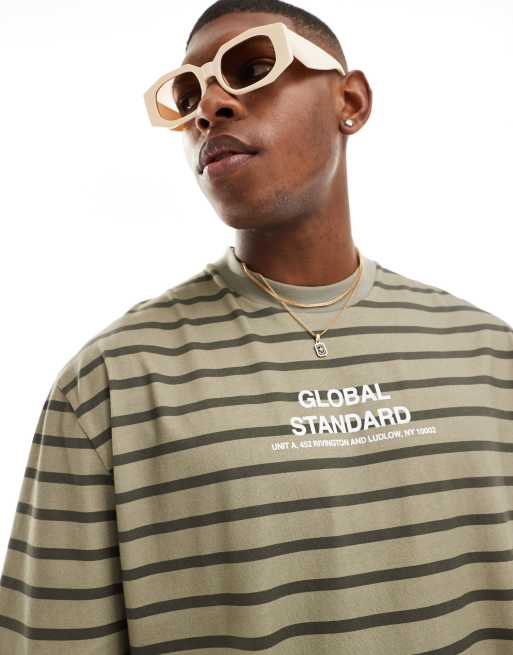 ASOS DESIGN - T-shirt oversize kaki a righe con stampa con testo sul petto