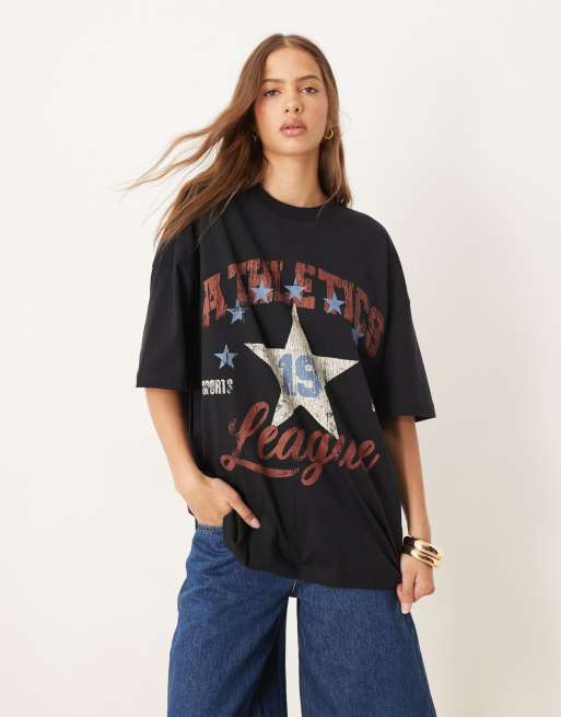 ASOS DESIGN - T-shirt oversize nera con grafica "Athletics League"
