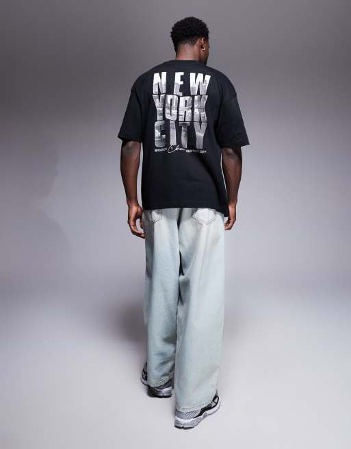 ASOS DESIGN - T-shirt oversize nera con grafica di città