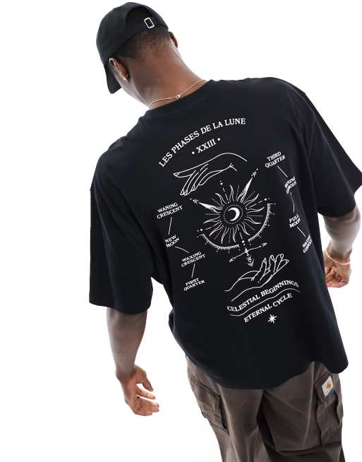 ASOS DESIGN - T-shirt oversize nera con stampa astrale davanti e dietro