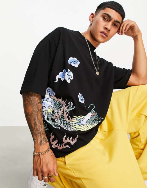 ASOS DESIGN - T-shirt oversize nera con stampa di dragone avvolgente