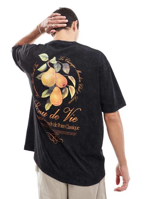 ASOS DESIGN - T-shirt oversize nera con stampa di frutta sul retro