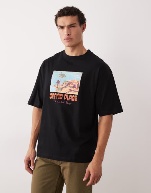 ASOS DESIGN - T-shirt oversize nera con stampa di paesaggio.
