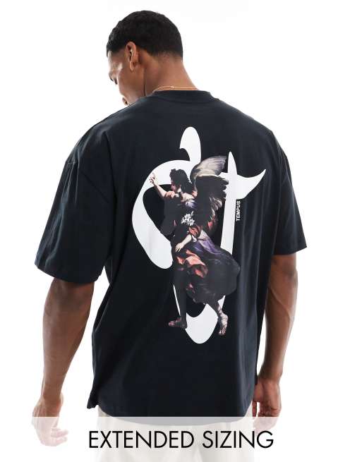 ASOS DESIGN - T-shirt oversize nera con stampa rinascimentale sul retro