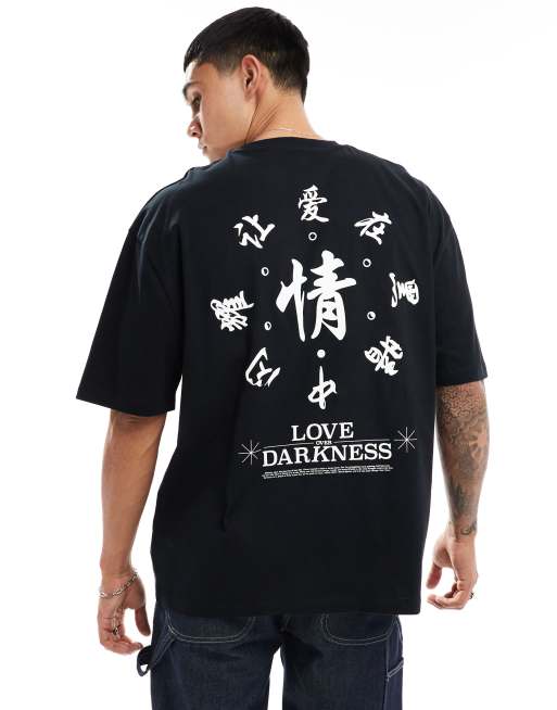 ASOS DESIGN - T-shirt oversize nera con stampa stile souvenir bianca sul retro