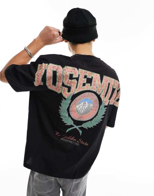 ASOS DESIGN - T-shirt oversize nera con stampa "Yosemite" sul retro