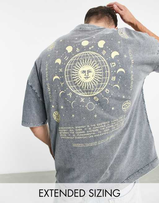 ASOS DESIGN - T-shirt oversize nero slavato con stampa di astri sul retro in tessuto pesante