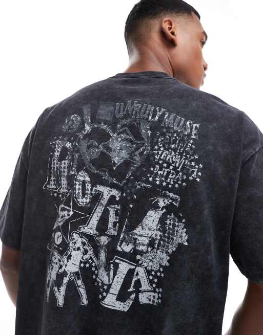ASOS DESIGN - T-shirt oversize nero slavato con stampa grafica grunge sbiadita sulla schiena