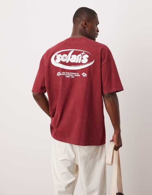 ASOS DESIGN - T-shirt oversize pesante bordeaux slavato con grafica e scritta