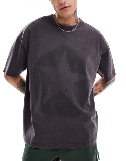 ASOS DESIGN - T-shirt oversize pesante da 220 gsm nero slavato con stampa di stella sul petto