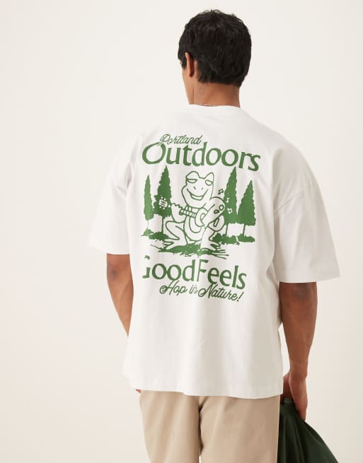 ASOS DESIGN - T-shirt oversize pesante da 240 g bianca con stampe di paesaggio