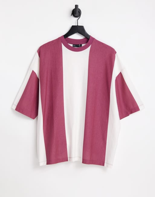 ASOS DESIGN - T-shirt oversize rosa e bianca a righe verticali
