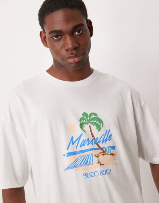 ASOS DESIGN - T-shirt oversize squadrata bianca con grafica estiva