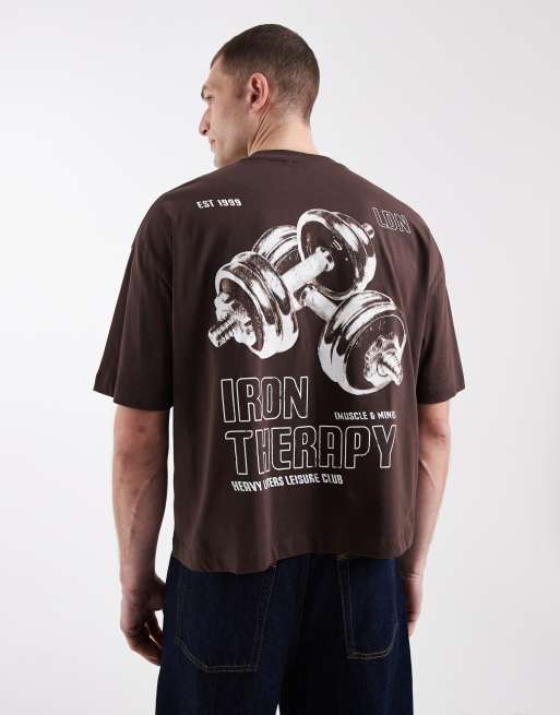 ASOS DESIGN - T-shirt oversize squadrata marrone con grafica sportiva