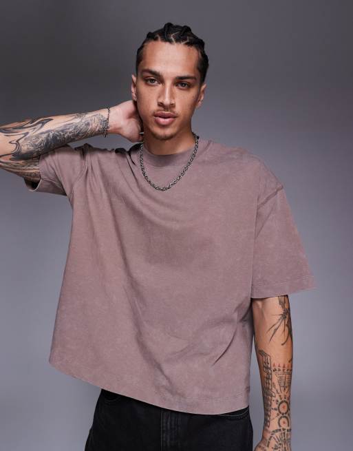 ASOS DESIGN - T-shirt oversize squadrata pesante marrone slavato