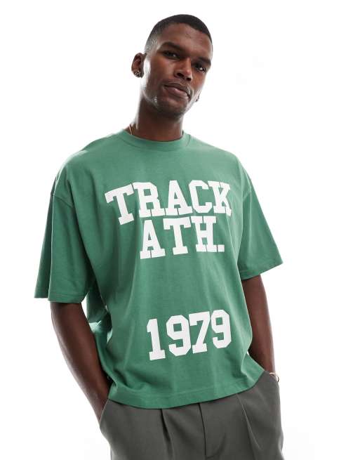ASOS DESIGN - T-shirt oversize squadrata verde con grafica sportiva