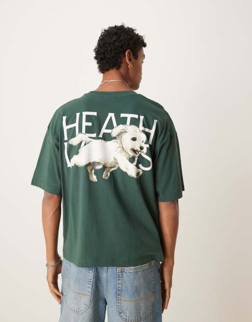 ASOS DESIGN - T-shirt oversize squadrata verde con stampa di cane