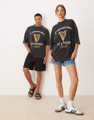 ASOS DESIGN - T-shirt oversize unisex nero slavato con stampa "Guinness"