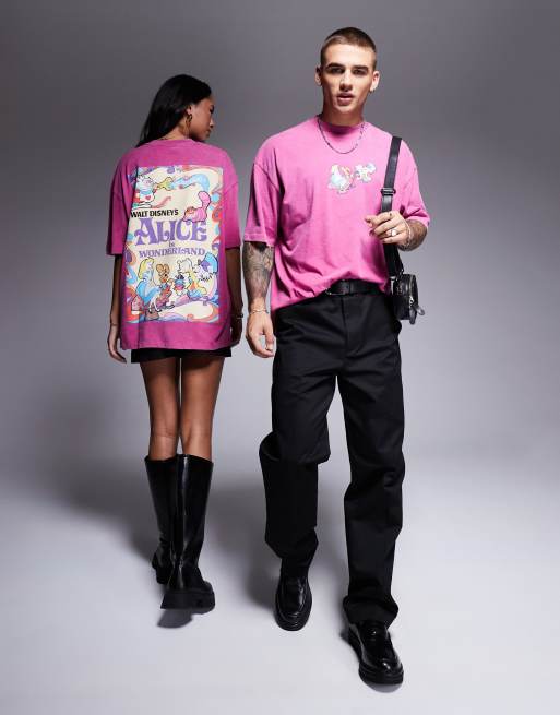 ASOS DESIGN - T-shirt oversize unisex rosa slavato con stampe Disney di Alice nel paese delle meraviglie