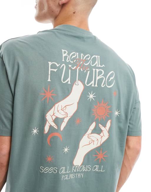 ASOS DESIGN - T-shirt oversize verde con stampa celestiale sul retro