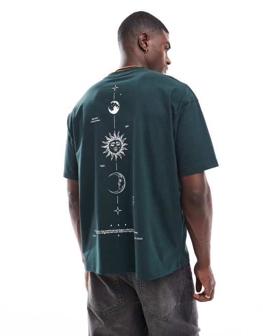 ASOS DESIGN - T-shirt oversize verde con stampa celestiale sul retro