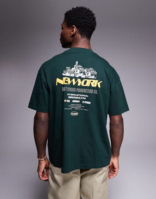 ASOS DESIGN - T-shirt oversize verde scuro con grafica con città